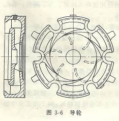 分段式多級離心泵工作原理:分段式多級離心泵中段每個葉輪的外面均安裝有一個導輪,導輪是一個固定不動的圓盤,它的作用是把從葉輪甩出的液體的一部分動能通過減速而轉化為靜壓能,并且把這些液體收集后沿徑向回流而導人到下一級葉輪人口處。尋輪的正面有環(huán)繞在葉輪外緣的正向導葉.背面有將液體引向下一級葉輪人口的反向導葉,其結構如圖6所示。